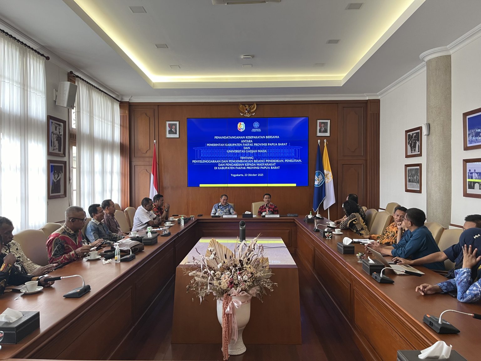 PSKK UGM – Pusat Studi Kependudukan dan Kebijakan (PSKK) UGM bekerja sama dengan Kabupaten Fakfak, Papua Barat dalam riset terkait pengentasan kemiskinan dan pengembangan potensi daerah. Kerja sama ini ditandai dengan penandatanganan kontrak (MoU) pada Rabu, 22 Oktober 2025 di Gedung Pusat Universitas Gadjah Mada.